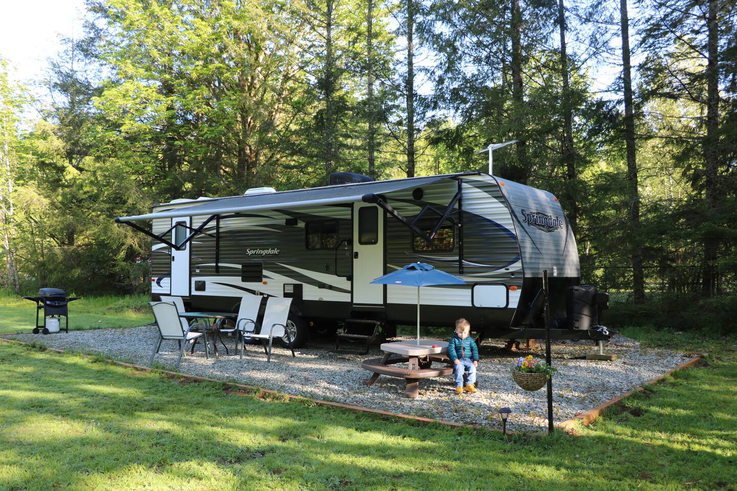 Our luxury 33' Springdale trailer sits on the far side of the property with views of the river and has privacy from the rental house. It sits right above the river, perfect spot to relax after a great day hiking. Ultimate family unique experience just 6 miles from the entrance to North Cascades National Park! A very scenic drive that is under two hours from Seattle.